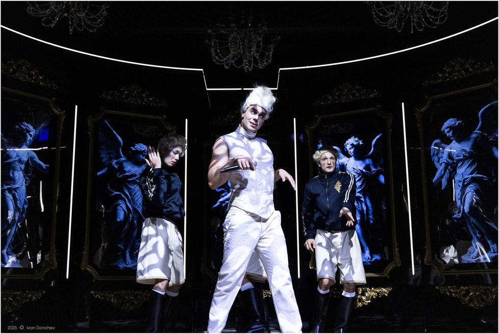 Под режисурата на Стайко Мурджев, спектакълът превръща сцената на МГТ „Зад канала“ в арена, на която шеметно са кръстосали шпаги любовта и политическите интриги на фона на блестящ хумор, сарказъм и спираща дъха театрална енергия. Великолепният актьорски състав, изключителните костюми и визуалната пищност изграждат свят, в който короните са окъпани в кръв, а атрибутите на властта са секс, поквара и ирония. „Велика“ не е просто историческа сатира, а сложен, мултижанров спектакъл, посветен на днешния ден, една страшна приказка за неистовата битка на жените в свят на токсична мъжественост, за блясъка на интелекта в епоха на тържествуваща глупост, за властта като болестно състояние с фатални последици.